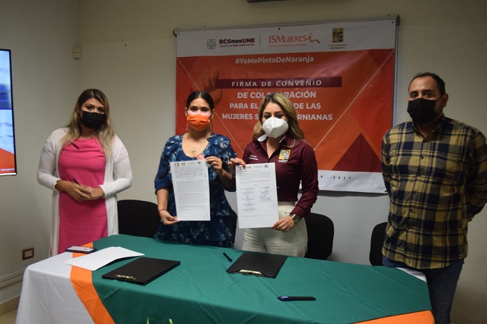 Con la finalidad de apoyar la economía de las mujeres, -otorgándoles herramientas para que puedan salir adelante-, la titular de la Dirección Municipal de Atención Ciudadana, Dina Margarita de La Paz Araiza, firmó un convenio de colaboración con la directora del Instituto Sudcaliforniano de las Mujeres (Ismujeres), Berenice Serrato Flores, estableciéndose que ambas dependencias trabajarán de manera conjunta para hacer llegar beneficios económicos a quien lo requiera y solicite.