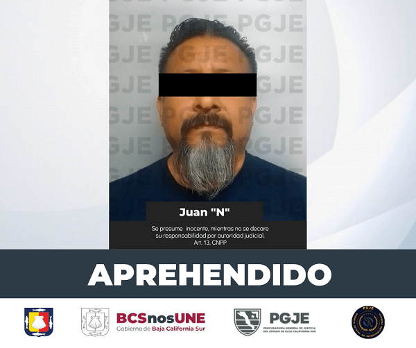 Por su probable responsabilidad en el delito de violación equiparada agravada en el municipio de La Paz, elementos de la Agencia Estatal de Investigación Criminal (AEIC) de la Procuraduría General de Justicia el Estado (PGJE) de Baja California Sur cumplimentaron orden de aprehensión en contra de Juan “N”.