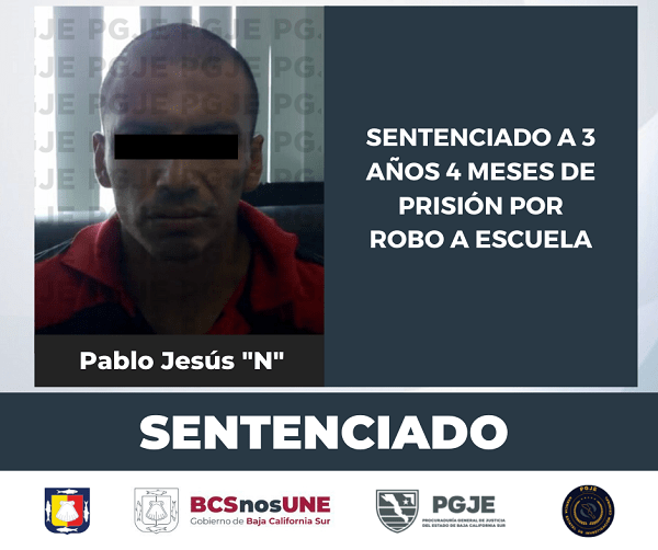 Por el delito de robo a institución educativa, la Procuraduría General de Justicia del Estado (PGJE) logró obtener una sentencia de 3 años 4 meses de prisión y un día de multa, mediante procedimiento abreviado.