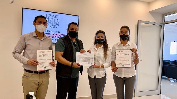 “Entregamos 483 constancia a los hoteles: Secrets Resort & Spa, Bretless Resort & Spa y Dreams Resorts & Spa; esto da una muestra del compromiso de los hoteleros para capacitarse y poder recibir los distintivos y certificaciones que actualmente requiere el sector turístico para ofrecer un servicio de calidad a los visitantes”, señaló el director de Capacitación y Cultura Turística.