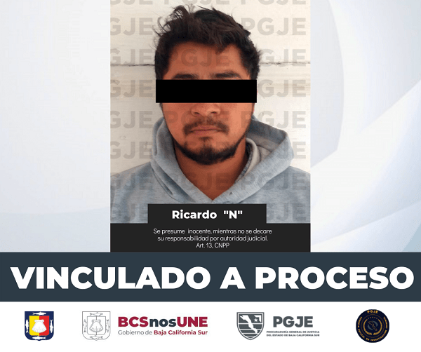 Ya detenido, Ricardo “N”, enfrentará su proceso penal ante la autoridad judicial, donde resultó vinculado a proceso, luego del trabajo de litigación de la PGJE, por lo que estará interno en el Centro Penitenciario de San José del Cabo en prisión preventiva oficiosa como medida cautelar.
