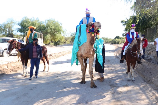 Dando seguimiento a las indicaciones del presidente municipal de Los Cabos, Oscar Leggs Castro, y en apego a los estrictos protocolos para la prevención de contagios de COVID-19, se realizó el festejo del tradicional “Día de Reyes Magos” en la comunidad de Los Pozos, donde la niñez pudo disfrutar de juegos mecánicos, música, juguetes, regalos y una sana convivencia familiar.