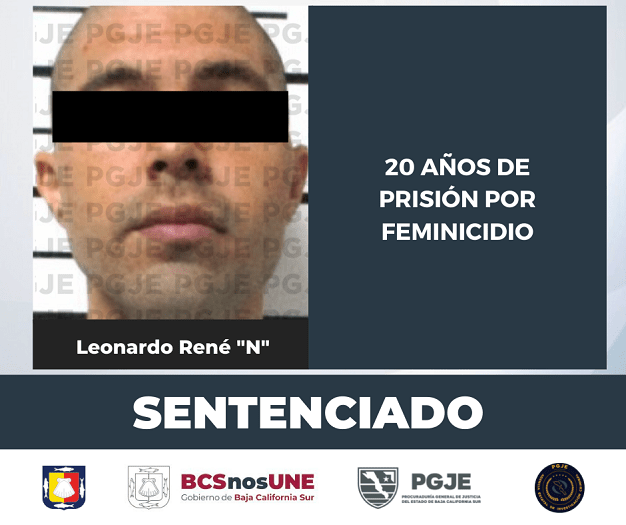 Por el delito de feminicidio, un sujeto fue sentenciado a 20 años en prisión, después de que la Procuraduría General de Justicia del Estado (PGJE), a través de la Unidad Especializada de Investigación de Feminicidio, logró acreditar ante el juez la responsabilidad de Leonardo René “N”.