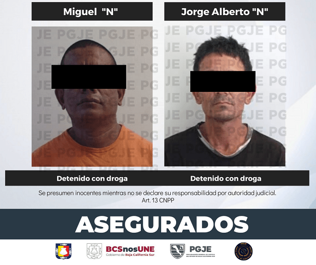 En acciones estratégicas para inhibir la distribución de narcóticos en Baja California Sur, agentes de investigación de la Procuraduría General de Justicia del Estado (PGJE) de Baja California Sur aseguraron mil 125 dosis de narcóticos y a dos personas del sexo masculino identificados como Miguel “N” y Jorge Alberto “N”, en operativo que realizaron el 13, del mes en curso en La Paz.