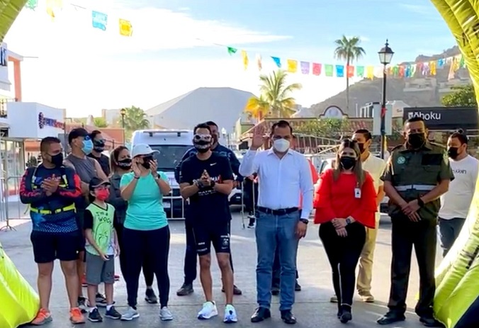 Minutos antes de arrancar la travesía, el Honorable Ayuntamiento de Los Cabos, a través de la Dirección General de Turismo y el Instituto del Deporte del Municipio de Los Cabos, dio la bienvenida al ultramaratonista mexicano y su equipo, en la plaza Amelia Wilkes para iniciar el desafío de relevancia internacional, en el cual se recorrerán y mostrarán las bellezas de 21 estados de le República Mexicana, finalizando en Cancún, Quintana Roo, en un periodo de 100 días.