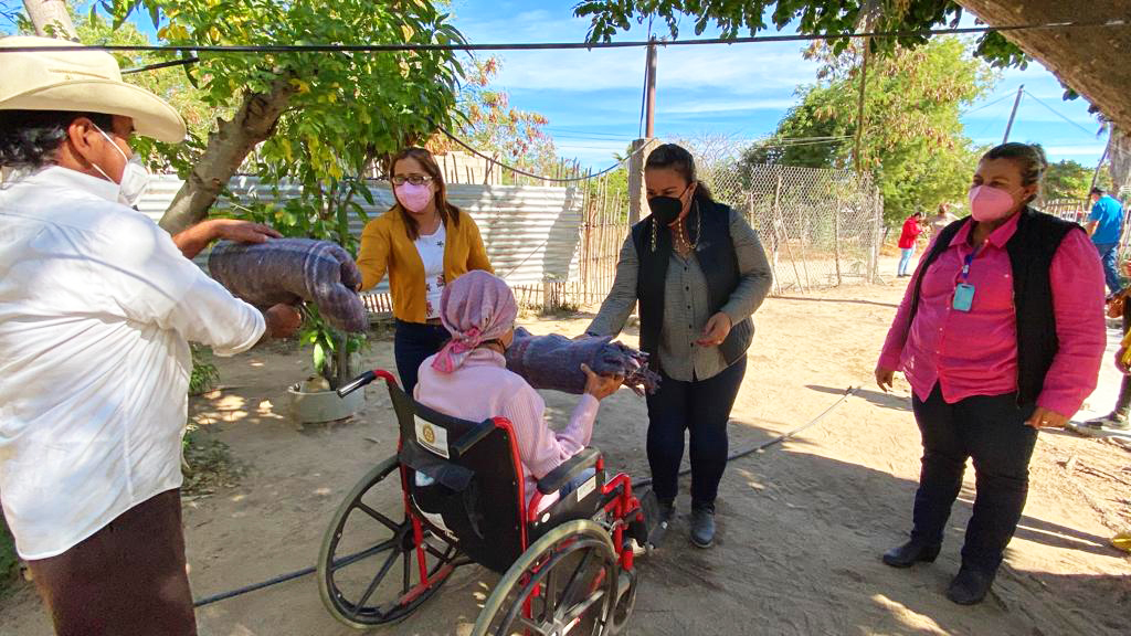 Buscando cobijar a las familias durante esta temporada de frio, la presidenta honoraria del DIF Los Cabos, Flora Aguilar Murillo, ha seguido entregando cobijas en la zona rural; en esta ocasión, junto a su homóloga en la delegación de Miraflores, Gladys Lizeth Acevedo y la coordinadora delegacional, Ana María Domínguez, llevaron a cada uno de los rincones de la comunidad el apoyo, mismo que fue recabado gracias a la contribución en la campaña que lanzó el Sistema Municipal el pasado mes de noviembre “Cobija a una Familia”.