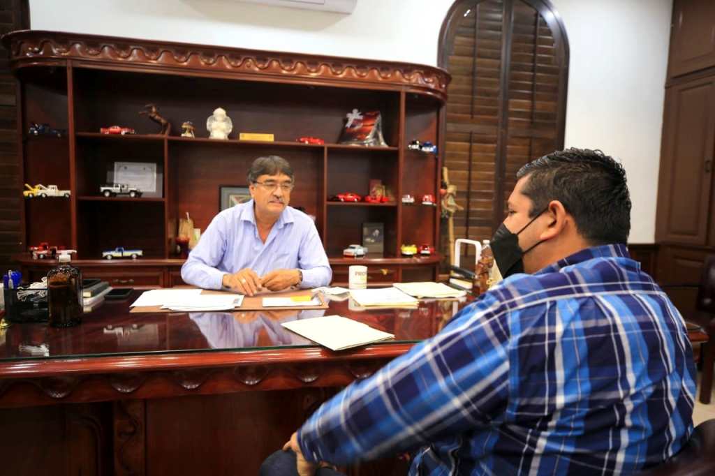 En la Presidencia del Palacio Municipal, el alcalde, Oscar Leggs Castro, recibió esta mañana al delegado de La Ribera, Miguel Mijares, para entablar una reunión y tratar asuntos generales de importancia para el desarrollo de dicha población, obras que corresponden principalmente a la Dirección General de Obras Públicas y Asentamientos Humanos.