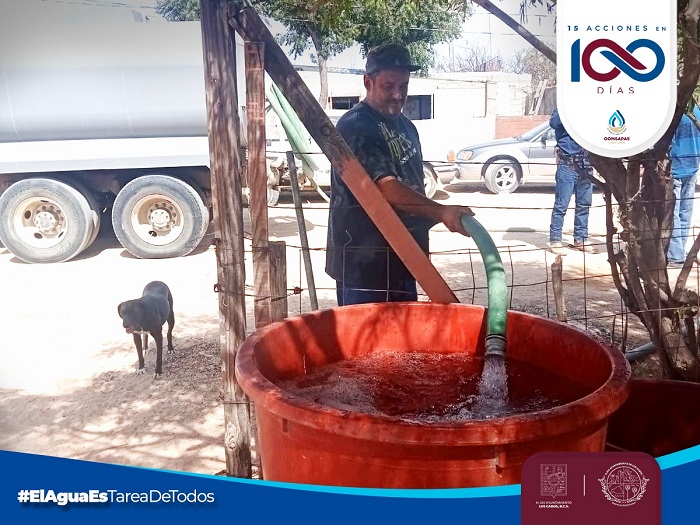 En los primeros 100 días de Gobierno, el Organismo Operador Municipal del Sistema de Agua Potable, Alcantarillado y Saneamiento de Los Cabos, implementó el programa “Apoyo con Pipas”, a través del cual se realizan 55 viajes diariamente en colonias e instituciones públicas de Cabo San Lucas y San José del Cabo.