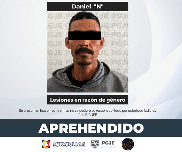 A partir de las investigaciones, se logró asegurar en la ciudad de San José del Cabo, a quien se presume responsable del delito de lesiones en razón de género.