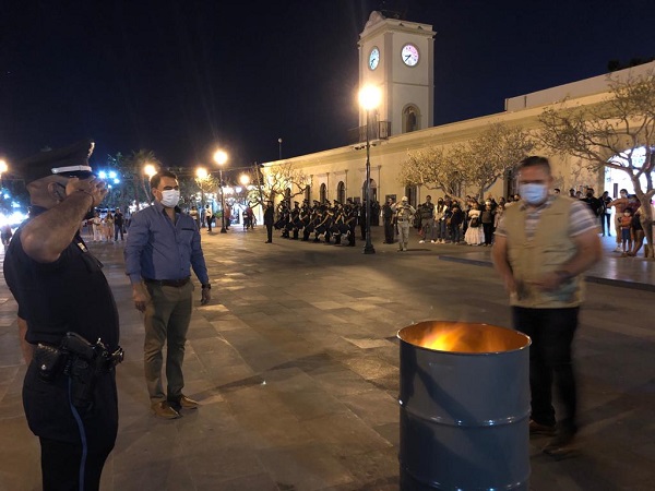 Durante el acto cívico, los toques de ordenanza estuvieron a cargo de la Banda de Guerra de la Dirección General de Seguridad Pública, Policía Preventiva y Tránsito Municipal; además del acompañamiento del coro de la Casa de la Cultura “Profesor Alfredo Green González” durante las gloriosas notas de los Himnos Nacional Mexicano y del Estado de Baja California Sur, y amenizando la noche, la presentación del ballet Mejiel Tammia a cargo del profesor Gabriel Reyes Madrigal con cuadros de Baja California Sur, Veracruz, Jalisco y Nuevo León.