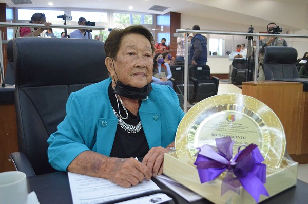 - En el marco del Día Internacional de la Mujer, la XVI Legislatura entregó el reconocimiento de Alto mérito a la profesora María Luisa Salcedo, por su amplia trayectoria