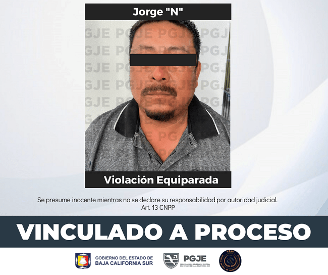El sábado 12 del mes en curso, se celebró en el Centro de Justicia Penal de Guerrero Negro, audiencia inicial por orden de aprehensión, en la que el agente del Ministerio Público del Fuero Común de la Unidad de Investigación y Judicialización de Delitos, aportó datos de prueba que permitieron al Juez de Control dictar Auto de Vinculación a Proceso en contra de una persona del sexo masculino, quien se relacionó como imputado en una carpeta de investigación, por un hecho que la Ley señala como delito de violación equiparada.