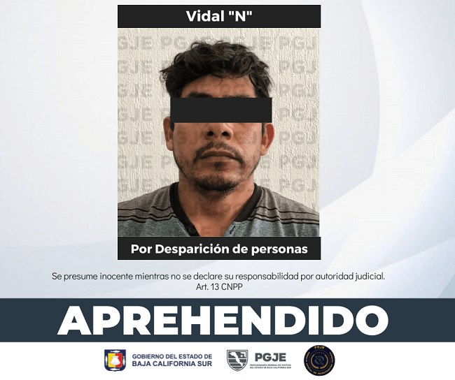 Derivado de las investigaciones que realiza la Procuraduría General de Justicia del Estado (PGJE), se cumplimentó orden de aprehensión en contra de Vidal “N”, por su relación en hechos que pueden constituir delito de desaparición de personas cometido por particulares.