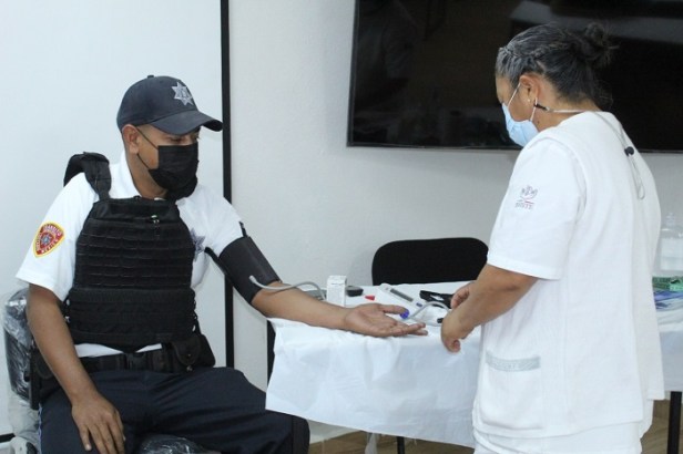 Con el objetivo de prevenir y detectar enfermedades, elementos adscritos a la Dirección General de Seguridad Pública, Policía Preventiva y Tránsito Municipal, participaron en la jornada de salud que realizó el personal del Instituto de Seguridad y Servicios Sociales para los Trabajadores del Estado (ISSSTE), a través de la cual realizaron exámenes médicos y aplicación de vacunas.