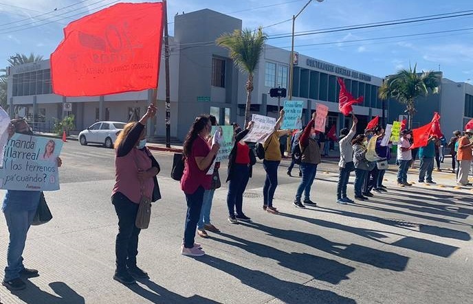 Aquí en Baja California Sur pretenden seguir lucrando con la necesidad de los más pobres, su objetivo es hacerse de terrenos en La Paz (ya tienen secuestrada la colonia La Pasión) y Los Cabos por lo que exigen al gobierno, y en particular al Instituto de Vivienda, cientos de terrenos y viviendas. Con lista en mano, esta organización realiza manifestaciones en palacio de gobierno y a las afueras del instituto exigiendo respuesta a sus demandas.