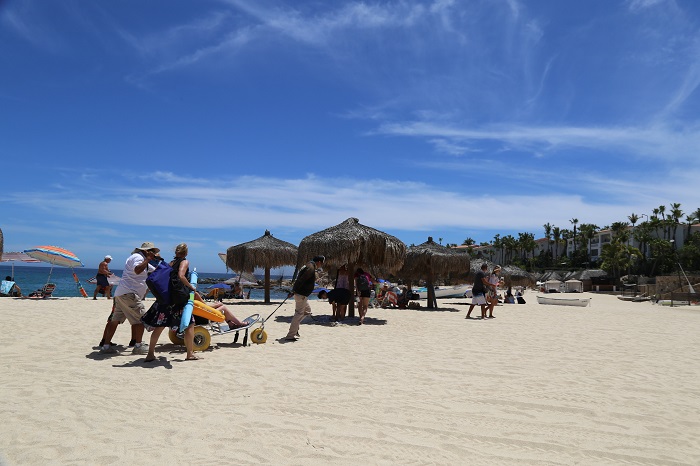 Las personas con discapacidades motrices o movilidad reducida que visitan las playas de Los Cabos con certificación Blue Flag, pueden disfrutar de estas bellezas naturales mediante un acceso especial en sillas anfibias que la Coordinación Municipal de la Zona Federal Marítimo Terrestre (Zofemat) tiene a su disposición, lo que enmarca al destino turístico como un referente de playas no solo en excelencia ambiental, sino también en accesibilidad y mobiliario inclusivo.