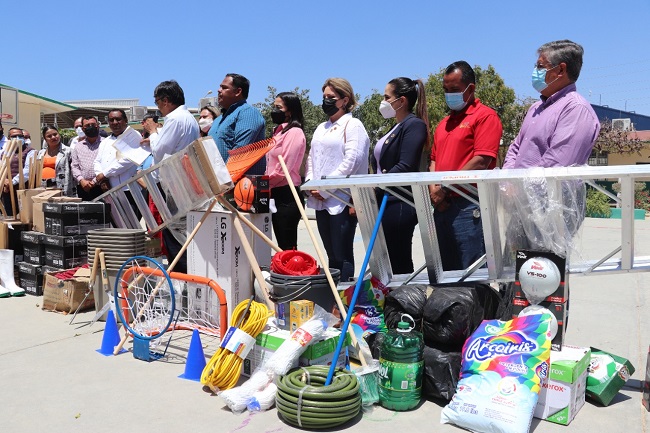 En beneficio de 1,277 alumnos de la escuela primaria “Ramón Green Álvarez”, autoridades del Gobierno de Los Cabos realizaron la entrega de un lote con productos de limpieza e higiene, así como materiales hidráulicos y de electricidad, como parte de un programa emergente para la reactivación de las clases presenciales tras la pandemia de COVID-19.