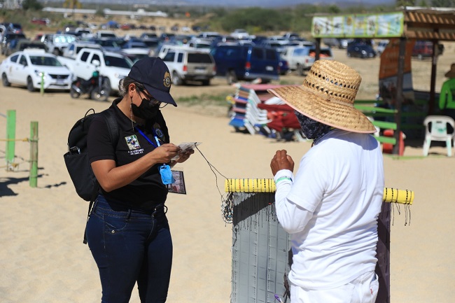 Con la finalidad de mantener el orden y la seguridad en las playas Cabo San Lucas, así como garantizar que la actividad comercial se realice de manera ordenada, personal de la Coordinación de Inspección Fiscal, realiza la instalación de filtros de control en la zona de El Médano, desde el hotel Riu hasta el hotel Breathless.
