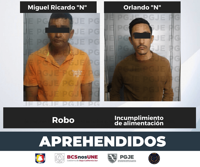 La Procuraduría General de Justicia del Estado (PGJE) de Baja California Sur aseguró a dos personas en operativos de agentes de investigación de la Unidad de Mandamientos Judiciales, a los imputados se les investiga por su probable relación en hechos delictivos.