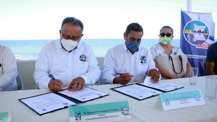 Este 20 de abril de 2022, el rector de la Universidad Autónoma de Baja California Sur, Dr. Dante Salgado González, oficializó un convenio de colaboración con “Efecto Arena”, asociación sudcaliforniana que trabaja en favor de la conservación y restauración ambiental, en especial de los ecosistemas marino-costeros.