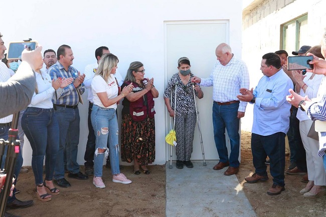 Matancitas, municipio de Los Cabos, B.C.S.- Ante la necesidad de recuperar una casa afectada en su totalidad en la localidad de Matancitas, por el paso del huracán Olaf, el gobernador Víctor Manuel Castro Cosío, hizo entrega de una vivienda inclusiva a la señora María Leticia Álvarez Castro.