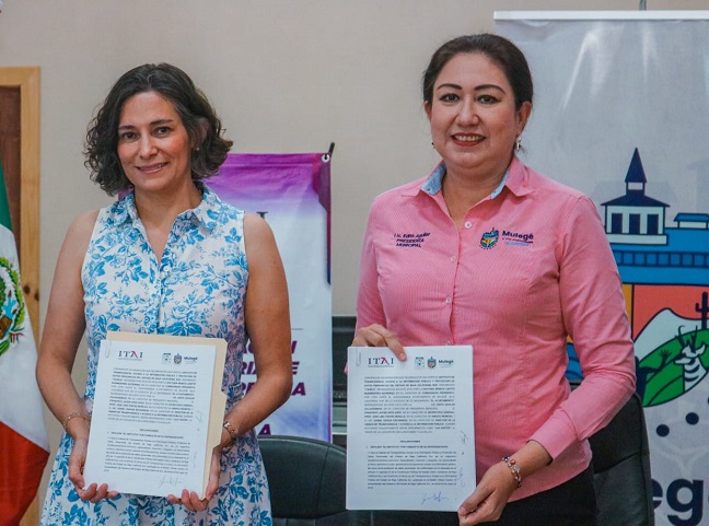 Santa Rosalía, B.C.S.- Edith Aguilar Villavicencio encabezó la firma de un convenio de colaboración entre el XVII Ayuntamiento de Mulegé y el Instituto de Transparencia, Acceso a la Información Pública y Protección de Datos Personales del Estado de Baja California Sur (ITAIBCS), representado en el acto por Rebeca Buenrostro Gutierrez, Comisionada Presidenta.