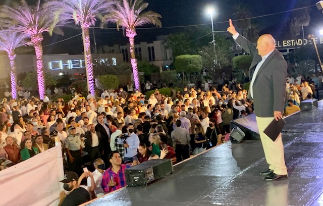 LA PLAZA DE LA REFORMA del Palacio de Gobierno, albergó a poco más de 3 mil personas: LA TRANSFORMACIÓN AVANZA, Estrategias, Acciones y Resultados”, informe de los primeros ocho meses de la administración de VÍCTOR MANUEL CASTRO COSÍO. Desde las seis de la tarde empezarían a llegar los invitados.