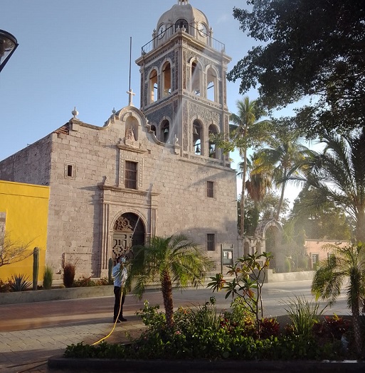 Por instrucciones de la alcaldesa Paola Cota Davis, hoy se realizó una jornada de fumigación a los árboles que se ubican desde el centro Histórico de Loreto, hasta el malecón costero.