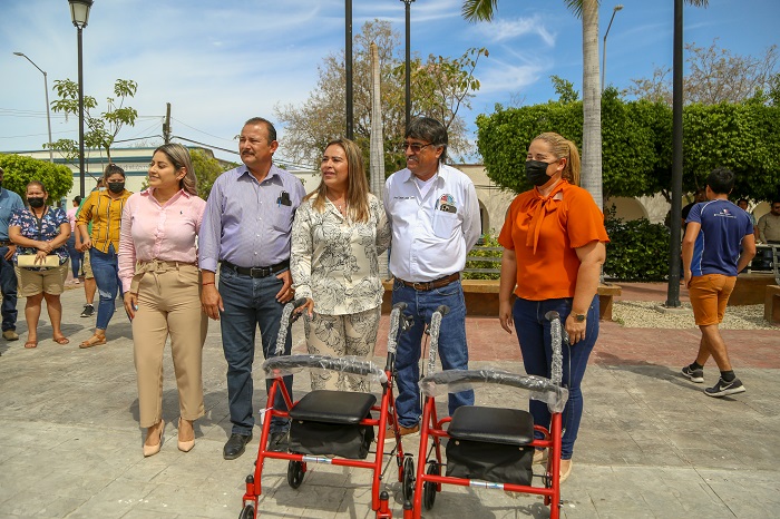 Siguiendo la encomienda de este Gobierno con sentido humano, la presidenta honoraria del Sistema Municipal DIF Los Cabos, Flora Aguilar Murillo, continúa escuchando y atendiendo las peticiones de la ciudadanía, por ello, durante su recorrido por la zona rural otorgó a través de su homóloga en Santiago, Susana García, el apoyo asistencial de 2 andaderas con asiento para la ciudadana Lucía Cota Cosío y Amado Cota Cosío.