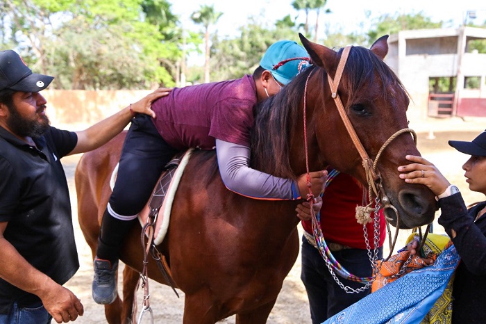 Por instrucciones de la presidenta honoraria del Sistema Municipal DIF Los Cabos, Flora Aguilar Murillo, y con el objetivo de garantizar la inclusión y salud de la ciudadanía, esta semana inauguraron el Programa de Equinoterapias a través de la Coordinación de Discapacidad del Sistema Municipal, donde serán beneficiados 50 niños, niñas y adolescentes con alguna discapacidad cada bimestre, de manera totalmente gratuita.