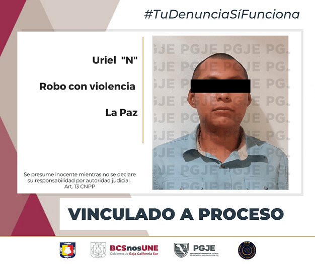 El 12 de abril del año en curso Uriel Bibiano “N”, se introdujo a una tienda de autoservicio que se ubica en la Av. Forjadores y calle Oro, en la colonia Diana Laura, en La Paz; el ahora imputado, acompañado de otro sujeto amenazó a la empleada para despojarla de dinero efectivo de la caja y de un teléfono celular, los trabajos de investigación de la Procuraduría General de Justicia del Estado (PGJE) lograron vincularlo a proceso y dejarlo en prisión preventiva.