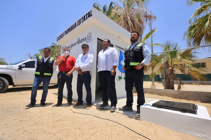 Para refrendar el compromiso de mejorar las herramientas de la comunidad estudiantil del municipio, este miércoles 01 de junio el alcalde Oscar Leggs Castro, tuvo a bien realizar la entrega de una cisterna y bodega integral en la escuela primaria Ramón Green Álvarez en la delegación de Cabo San Lucas, con el objetivo de que la institución educativa no tenga que suspender clases por la falta del vital líquido, problema constante al que se enfrentaba personal docente y estudiantes.