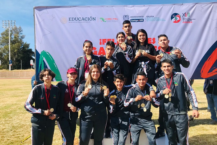 Alumnos del Colegio de Estudios Científicos y Tecnológicos del Estado (Cecyte) obtuvieron 14 medallas de oro y 4 de plata en el Encuentro Nacional que organiza la institución educativa, llevado a cabo en la ciudad de Aguascalientes, en el que participaron representantes de los colegios de todo el país, así lo dio a conocer el director general, Roberto Pantoja.