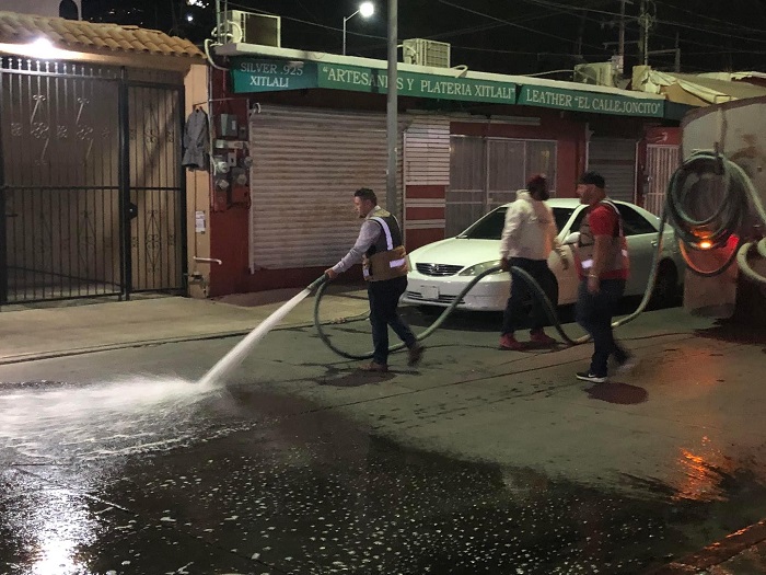 “El saneamiento se realiza de dos formas, dependiendo la zona en la que se haya presentado el derrame: con una pipa de agua clorada para limpiar las calles de concreto hidráulico o asfalto, y en el caso de las calles de terracería se realiza una desinfección con cal”, explicó José María Ramírez García.