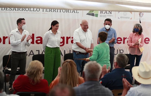 Acompañado por el titular del RAN en la entidad, Alfredo Robles López, de la alcaldesa de La Paz, Milena Quiroga y en presencia de ejidatarios de La Paz, Los Cabos y Comondú, el mandatario destacó que actualmente la dependencia sale a campo a informar de procedimientos como lista de sucesión, testamentos agrarios, además de orientación en la materia, entre otros servicios.