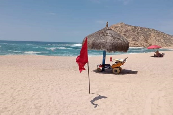 Los Cabos, B.C.S., 24 junio 2022.- Extremar precauciones y acatar las indicaciones de salvavidas para evitar situaciones que pongan en riesgo la integridad física, es la recomendación que el personal de la Coordinación Municipal de la Zona Federal Marítimo Terrestre (Zofemat) de Los Cabos hace a la ciudadanía, ante la presencia del oleaje elevado que se registra en las en las playas del destino turístico.