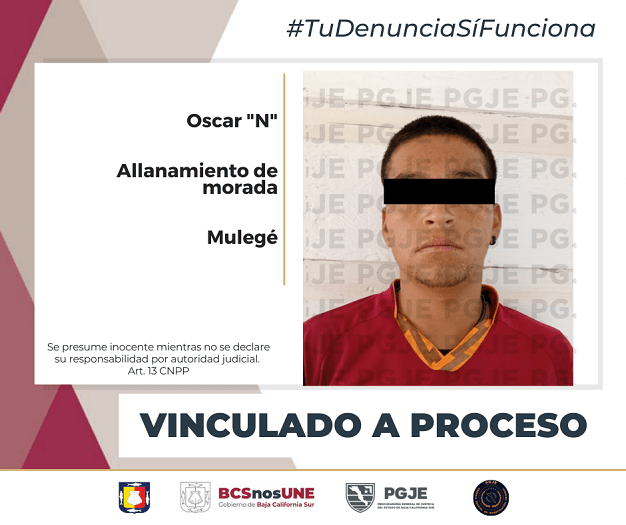 El 20 de septiembre del 2021 en un domicilio que se ubica en la colonia Ranchería, en Santa Rosalía, sin autorización de quien pudiera otorgarla, Oscar “N” se introdujo a una casa habitación y al verse descubierto cuando se encontraba en el interior, salió corriendo, por lo que ahora enfrenta el cargo por delito de allanamiento de morada, luego que la Procuraduría General de Justicia del Estado (PGJE) proporcionó datos de prueba que lo relacionan con el hecho.