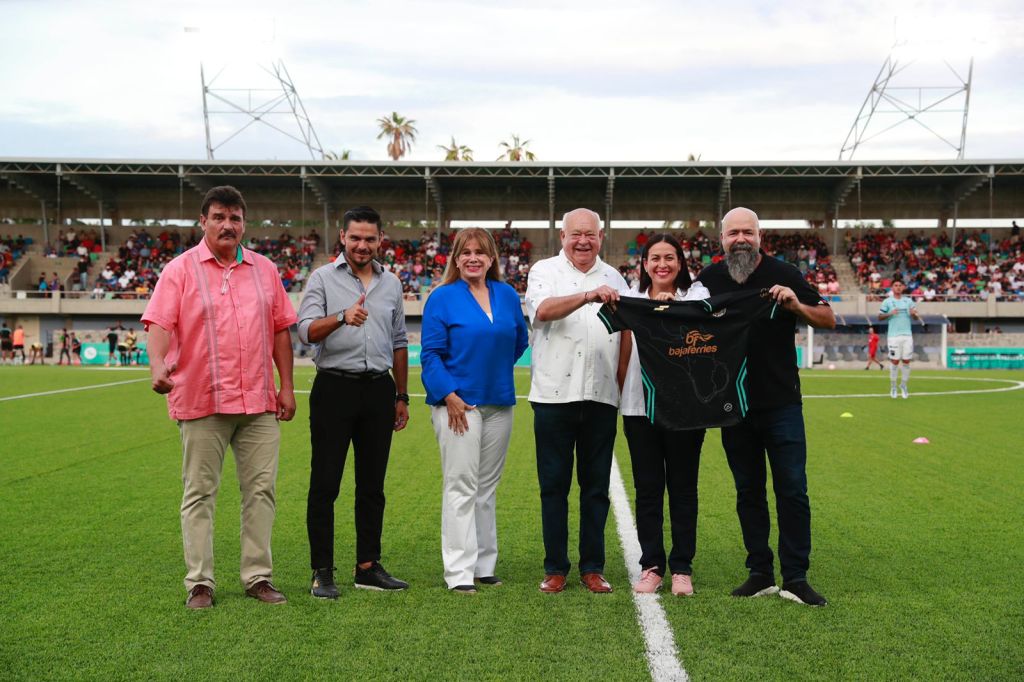 El gobernador Víctor Castro Cosío realizó el tiro inaugural en el regreso del fútbol profesional a Baja California Sur y la presentación ante la afición del equipo Club Atlético La Paz, en el estadio Guaycura.