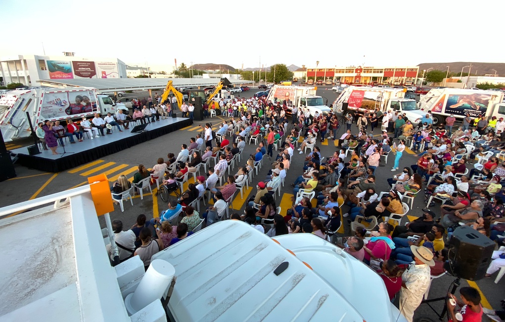 La Paz, Baja California Sur.- La Presidenta Municipal, Milena Quiroga Romero encabezó la entrega de 7 nuevos camiones de recolección de basura con una inversión de 27 millones de pesos, aumentando a 31 unidades para prestar el servicio, beneficiando a más de 65 mil habitantes de 39 colonias de esta ciudad capital.