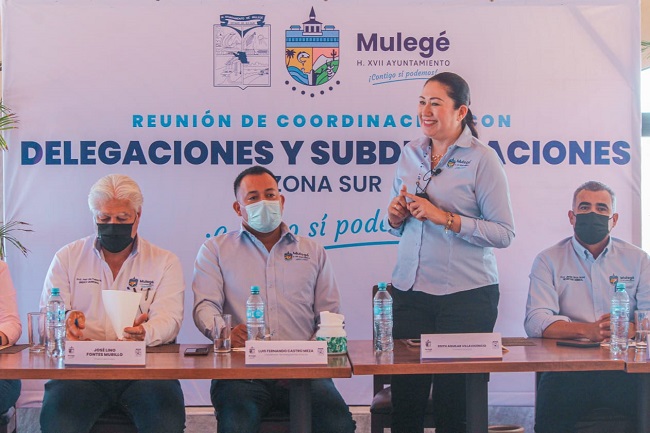 En seguimiento a las acciones encaminadas para el desarrollo integral de las localidades de Mulegé, la alcaldesa, Edith Aguilar Villavicencio sostuvo un encuentro con representantes delegacionales del sur del municipio, en donde participaron 2 delegados y 12 subdelegadas y subdelegados acompañados por Luis Fernando Castro Meza, coordinador de la zona.