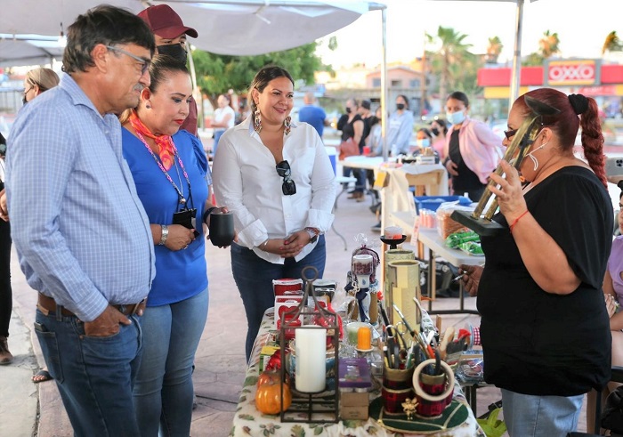 Con el ímpetu de ofertar las artesanías, platillos regionales y diversidad de productos de personas emprendedoras que buscan mejorar su economía, el Gobierno de Los Cabos a través de la Dirección General de Fomento Económico, activó el Mercado Regional en la plaza pública “León Cota Collins” de Cabo San Lucas, la tarde del domingo 10 de julio; un evento que inauguraron el presidente municipal Oscar Leggs Castro, la presidenta honoraria del Sistema para el Desarrollo Integral de la Familia (DIF) Flora Aguilar de Leggs y el III regidor Héctor Fabián Ceseña Ceseña.