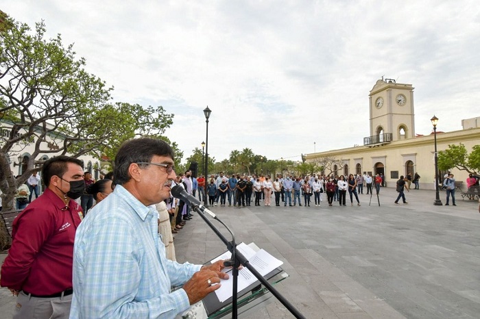 Tras rendir honores a los lábaros patrios en la explanada frente al Palacio Municipal, el alcalde de Los Cabos Oscar Leggs Castro, agradeció a todas las personas servidoras públicas que a poco menos de 10 meses de un Gobierno con sentido humano, han entregado lo mejor de sí para que las familias tengan confianza nuevamente en su Gobierno municipal.