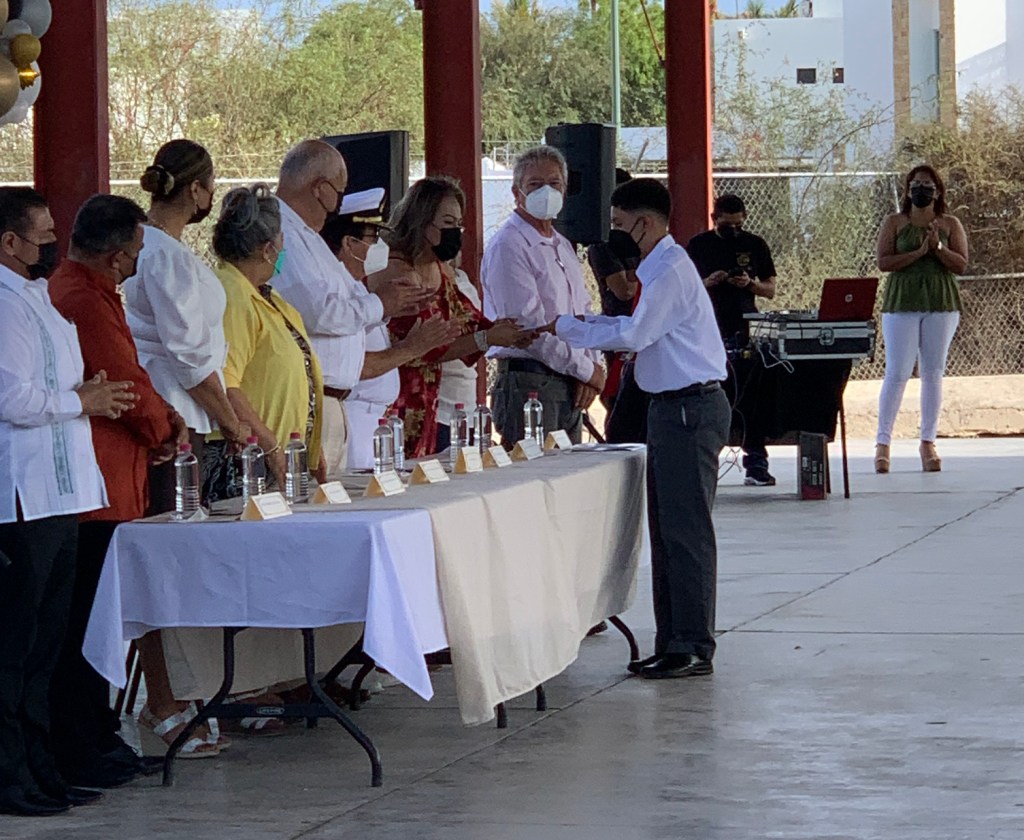“Reconocemos a todas y a todos desde Isla Natividad hasta Cabo San Lucas porque esta es una generación especial que logró salir adelante en un momento de incertidumbre”, dijo ante la comunidad estudiantil en la ceremonia de fin de cursos de la generación 2019-2022 de la escuela secundaria “José Pilar Cota Carrillo”.