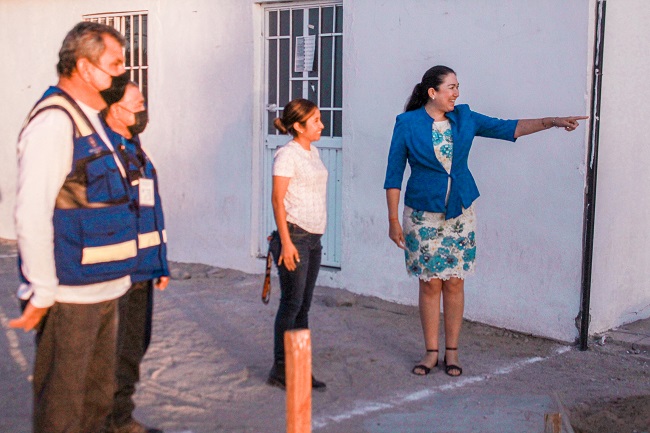 En este sentido, la presidenta municipal, acompañada de Isaí Bautista y Esther Hinojosa, regidores, así como de Jenny Hernández, delegada municipal del Valle de Vizcaíno; realizó un recorrido frente a las instalaciones de la delegación municipal, sitio donde se edificará el inmueble cultural.