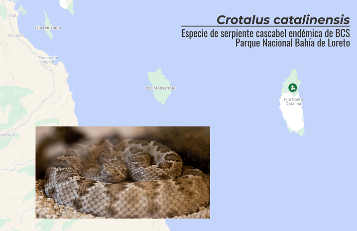 En Baja California Sur, específicamente en Isla Santa Catalina parte del Parque Nacional Bahía de Loreto, habita la Crotalus catalinensis, especie de serpiente endémica considerada el “santo grial de las cascabeles”, debido a que carece de su principal característica, el cascabel.