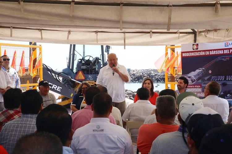El gobernador del estado, Víctor Castro Cosío, puso en marcha la obra de modernización de la dársena del puerto de Loreto, lo que representa una inversión de 2.87 millones de pesos en su primera etapa y contempla la rehabilitación de rampa de botado y construcción de accesos para pescadores en andadores 1 y 2.