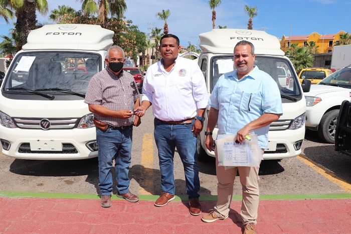 - El delegado de Cabo San Lucas Raymundo Zamora Ceseña, hizo entrega de dos mini camiones con capacidad de 1.3 toneladas de carga en la Delegación sanluquense.