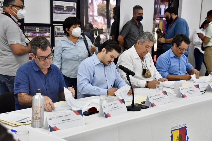 Por el Congreso firmaron el diputado José María Avilés, Presidente de la JUGOCOPO y el diputado Eduardo Van Wormer, Presidente de la mesa directiva de la Diputación Permanente, en tanto que por Polea firmó Andrés Ávila, Director Ejecutivo de Polea; firmaron también legisladores y legisladores como testigos de este acuerdo.