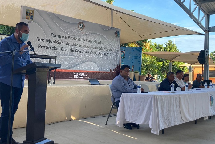 En su intervención, el subdirector de Protección Civil en Los Cabos, Francisco Cota, explicó la importancia de contar con la valiosa participación de la ciudadanía ,quien coadyuva con las autoridades ante la amenaza de lluvias, pero también estar capacitados ante siniestros, sismos e incidentes de salud: ‘’tal y como lo hicimos en Cabo San Lucas, esta tarde se tomó protesta a quienes estarán frente a las brigadas de San José del Cabo, se les va a capacitar en diversos temas para que en conjunto con nosotros como Protección Civil, sean de apoyo en caso de una situación de emergencia, toda vez que ellos conocen las zonas donde viven y eso nos permitirá trabajar de manera directa con la población, en temas como la evacuación y el llevar a las personas a los refugios temporales, entre otros eventos que garanticen la integridad de la ciudadanía’’, puntualizó.