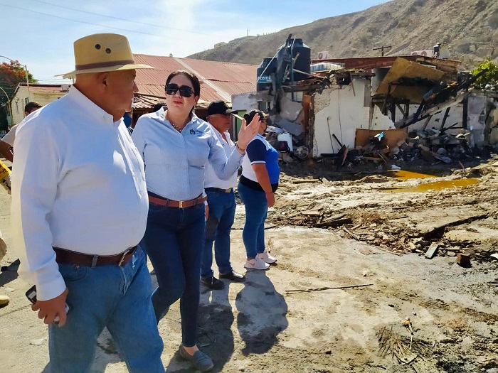 Al visitar la zona del incendio acompañado por la alcaldesa Edith Aguilar Villavicencio, y las diputadas Paz Ochoa y Teresita de Jesús Valentín, dijo que la Secretaría de Planeación Urbana y la dirección de Obras Públicas del municipio de Mulegé iniciarán de inmediato, con la ayuda del Ejército y la Marina, las tareas de limpieza del área afectada.